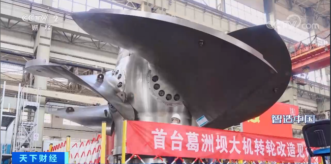 ÏÖÔÚ»­ÃæÀïÊǸðÖÞ°ÓË¢ÐÂÏîÄ¿µÄ¶þºÅ»ú×éµÄË®ÂÖ»úתÂÖ£¬Ò²ÊÇÏÖÔÚÌìÏÂÉÏ×î´óµÄÖáÁ÷ʽˮÂÖ»úתÂÖ£¬Ö±¾¶µÖ´ï11.3Ã×£¬ÖØ´ï550¶Ö£¬×ªÂÖÌåµÄÍâ¹ÛÊDz»Ðâ¸Ö½á¹¹£¬ÏÖʵÉÏËüÊÇͨ¹ý3D´òÓ¡µÄ·½·¨º¸½ÓÉÏÈ¥µÄ£¬º¸½ÓÃæ»ýµÖ´ïÁË32.7ƽ·½Ã×£¬¶Ñº¸ÖØÁ¿´ï3.8¶Ö¡£
