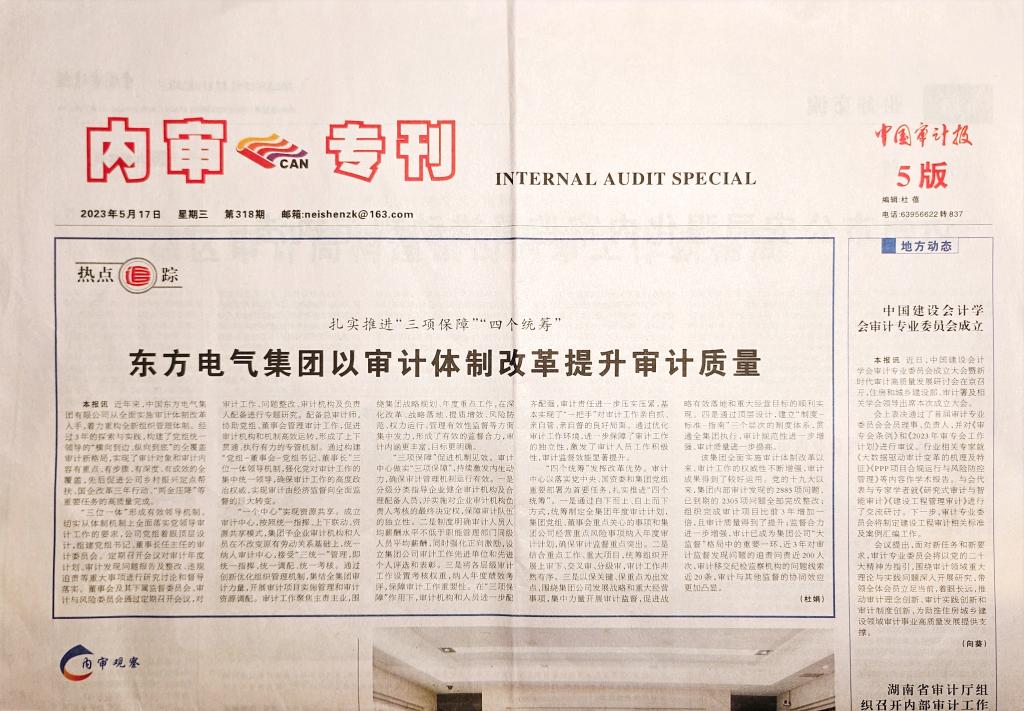 “三位一体”形成有用向导机制。切实从体制机制上周全落实党向导审计事情的要求,公司党组着眼顶层设计,组建党组书记、董事长任主任的审计委员会。按期召开聚会对审计年度妄想、审计发明问题报告及整改、违规追责等重大事项举行研究讨论和督导落实。董事会及其下属监视委员会、审计与危害委员会通过按期召开聚会,对审计事情、问题整改、审计机构及认真人配备举行专题研究。配备总审计师,协助党组、董事会管理审计事情,增进审计机构和机制高效运转,形成了上下意会、执行有力的专管机制。通过构建“党组-董事会-党组书记、董事长”三位一体向导机制,强化党对审计事情的集中统一直导,确保审计事情的高度政治权威,实现审计由经济监视向周全监视的重大转变。