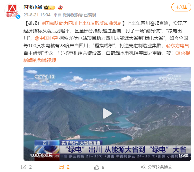[国资小新]雄起!#国家队助力四川上半年V形反转曲线#