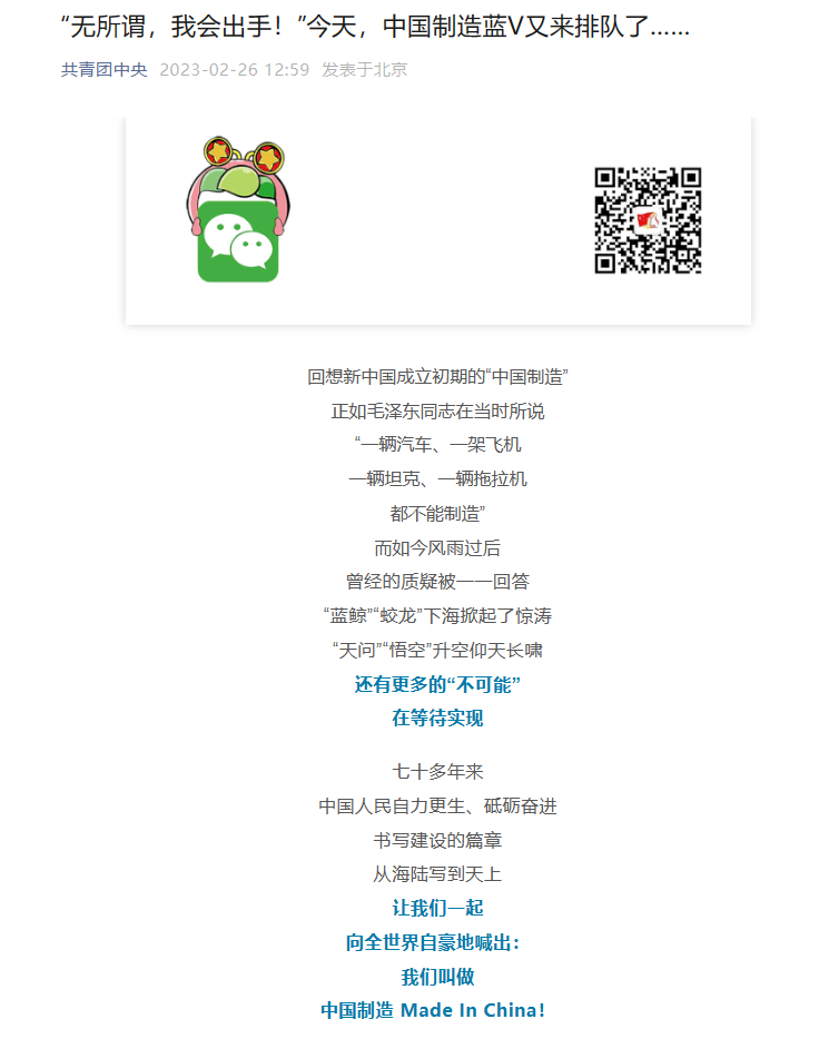 [共青团中央]“无所谓,我会脱手!”今天,中国制造蓝V又来排队了……