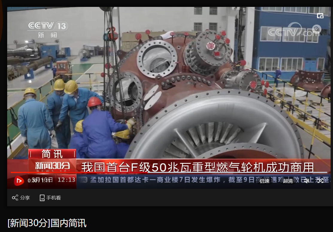 [央视新闻30分]我国首台F级50兆瓦重型燃气轮机乐成商用