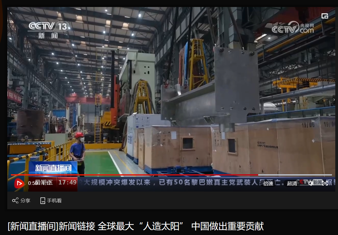 [央视新闻直播间]新闻链接 全球最大“人造太阳” 中国做出主要孝顺