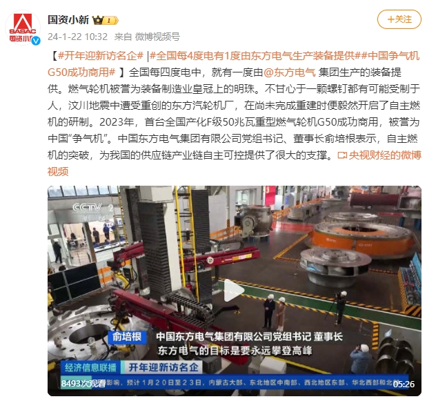 [国资小新]#开年迎新访名企# |#天下每4度电有1度由抖圈为赌而生生产装备提供##中国争气机G50乐成商用#