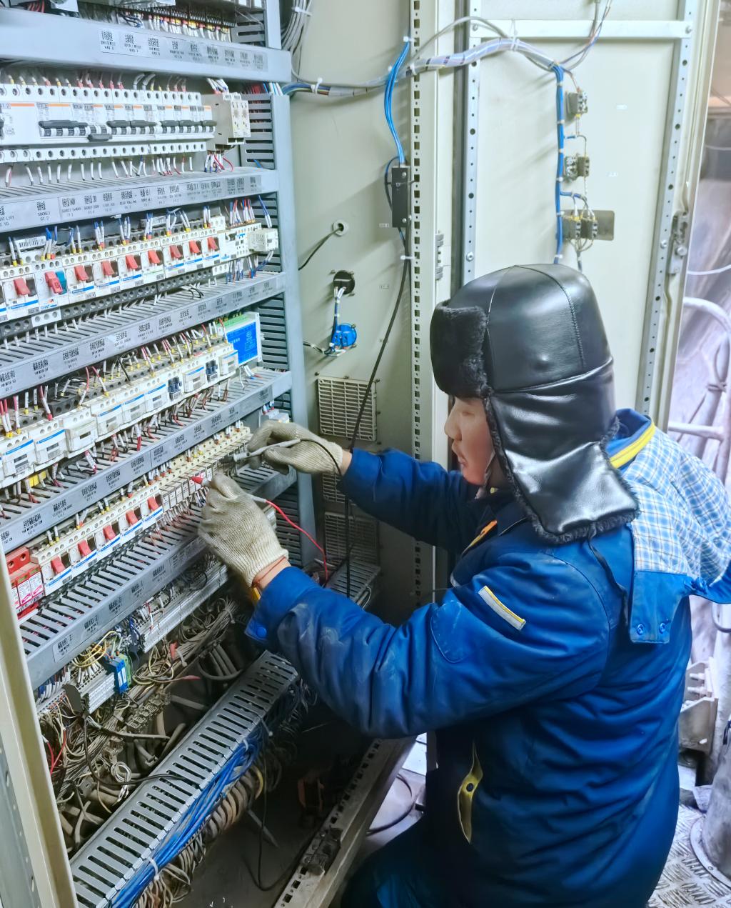 在位于塔克拉玛干沙漠边沿地区的新疆和田热电项目现场,在零下10度至20度的情形下,东方锅炉项目服务职员王运森正在为1号机组检查电站锅炉热态膨胀及导向装置,确保机组清静正常运行。