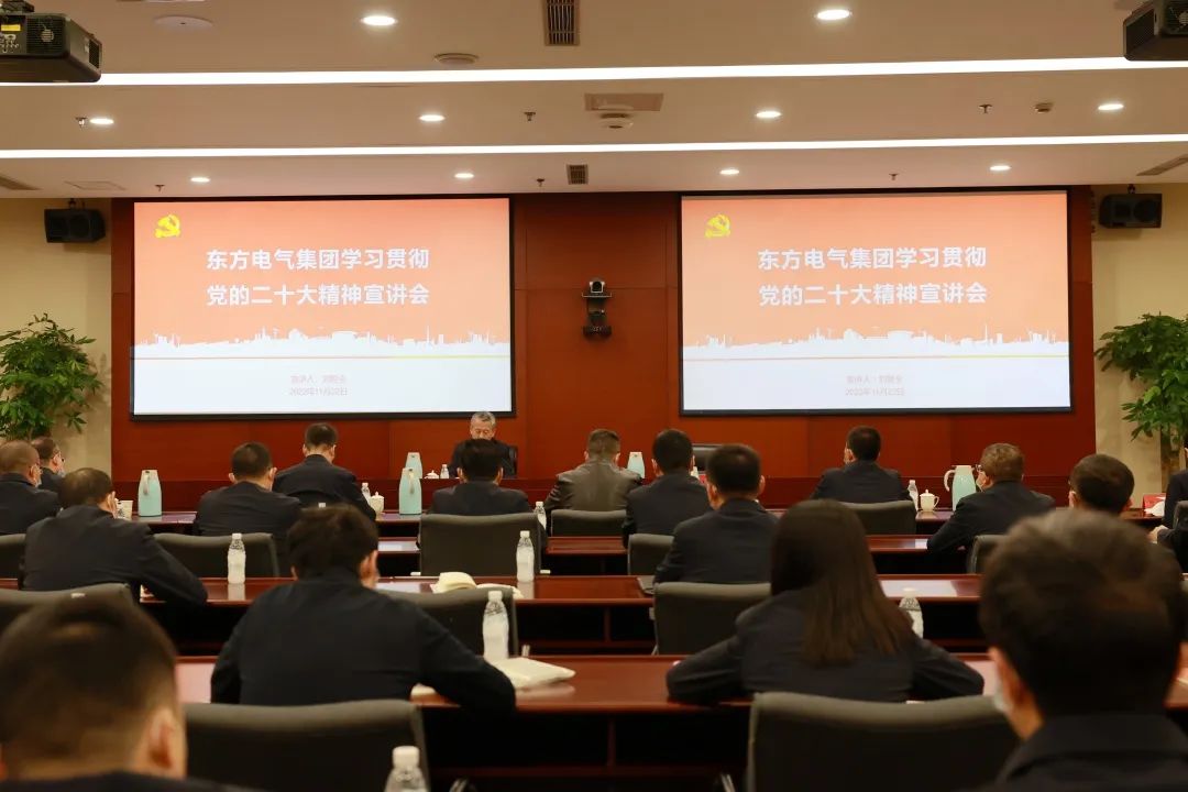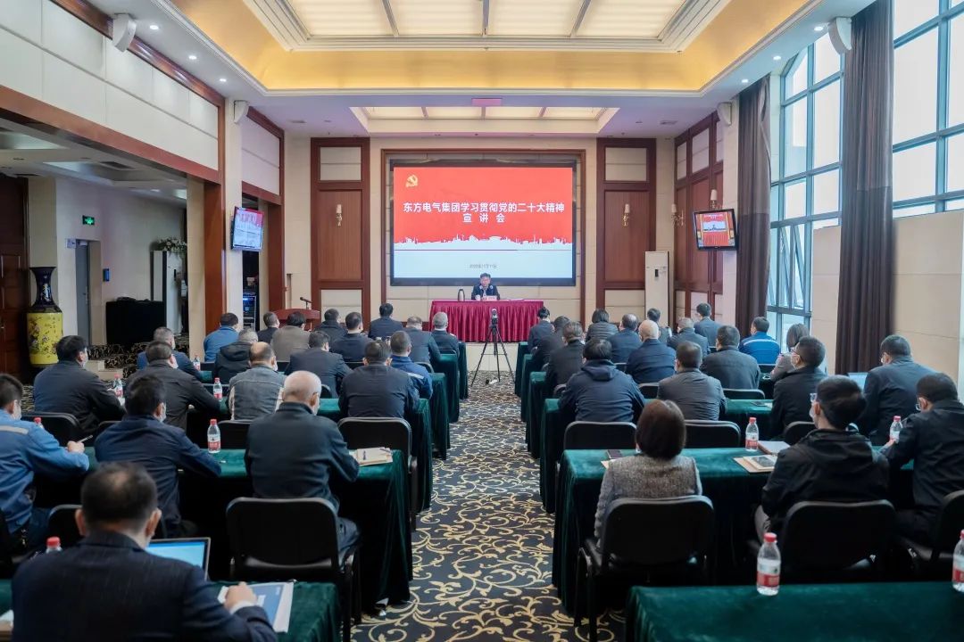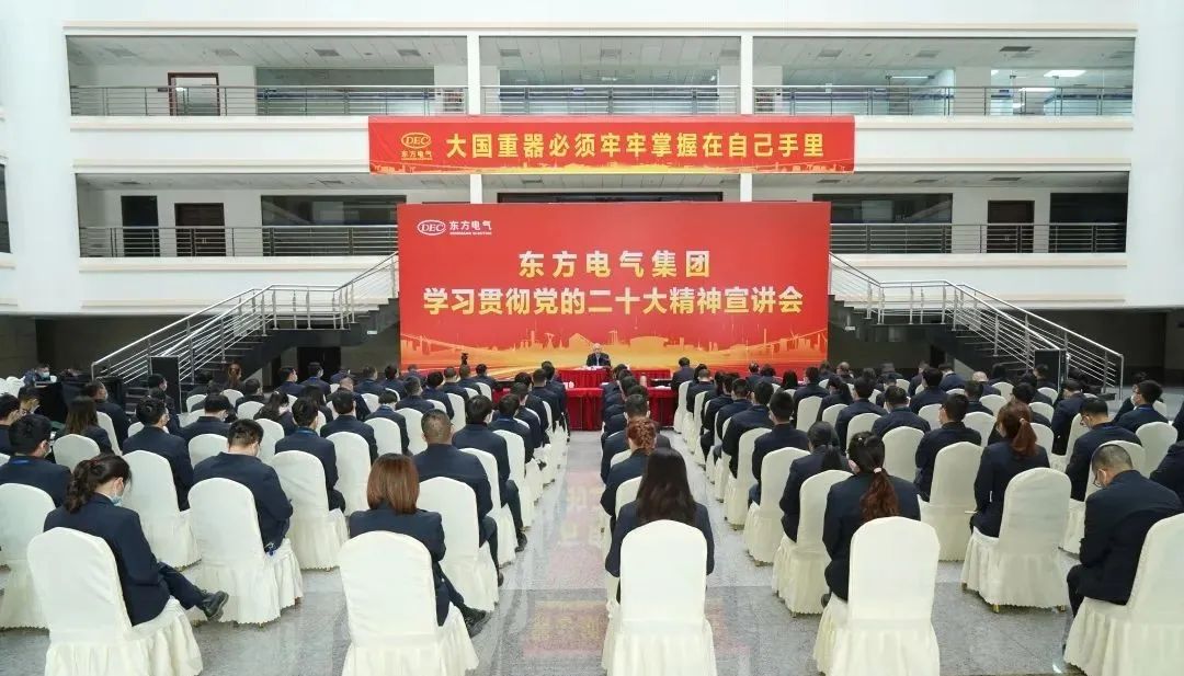 11月10日,党的二十大代表,集团公司党组书记、董事长俞培根深入“绿色智造”一线,为东方电机党员干部职工宣讲党的二十大精神。俞培根从“七个深刻掌握”对全集团团结现实深入贯彻落实党的二十大精神作出系统安排,特殊是对东方电机在加速建设天下一流企业、提升科技立异支持作用、加速绿色低碳转型生长、释放企业刷新活力动力、以高质量党建引领包管高质量生长等方面提出明确要求。