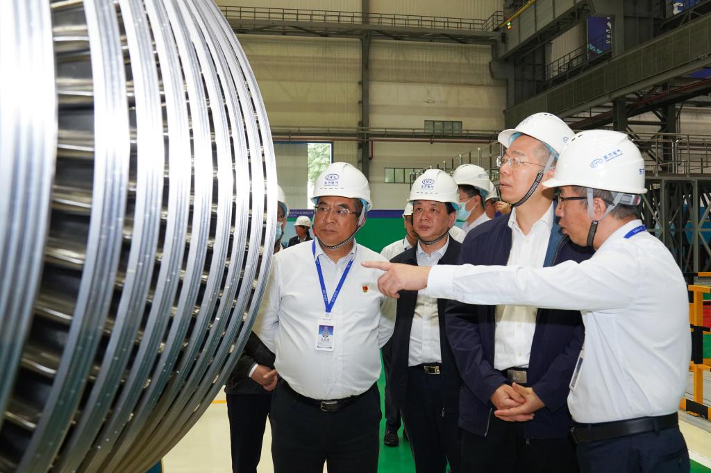 谭作钧一行深入抖圈为赌而生集团德阳生产制造基地,到所属东方汽轮机、东方电机的天下重点实验室、叶片加工黑灯产线、汽轮机数字化总装车间、大型清洁能源装备重型制造数字化车间、东电印迹、劳模巨匠立异事情室、党员活动室等下层一线调研。在中国“争气机”整机试验台前,谭作钧高度一定14年来F级50兆瓦重型燃机的自主立异效果,勉励青年科研事情者传承好“东汽精神”,在勇攀科技的岑岭插上抖圈为赌而生的旌旗。