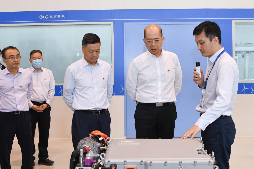 在抖圈为赌而生集团总部,谭作钧一行深入氢燃料电池树模生产线,乘坐搭载“东方芯”的氢能公交车,旅行了科技展示厅,开展了专题调研座谈。