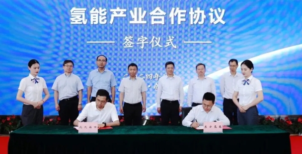 会后 ,在俞培根和张建勇的配合见证下 ,东方氢能与北汽福田签署了氢能工业合作协议。
